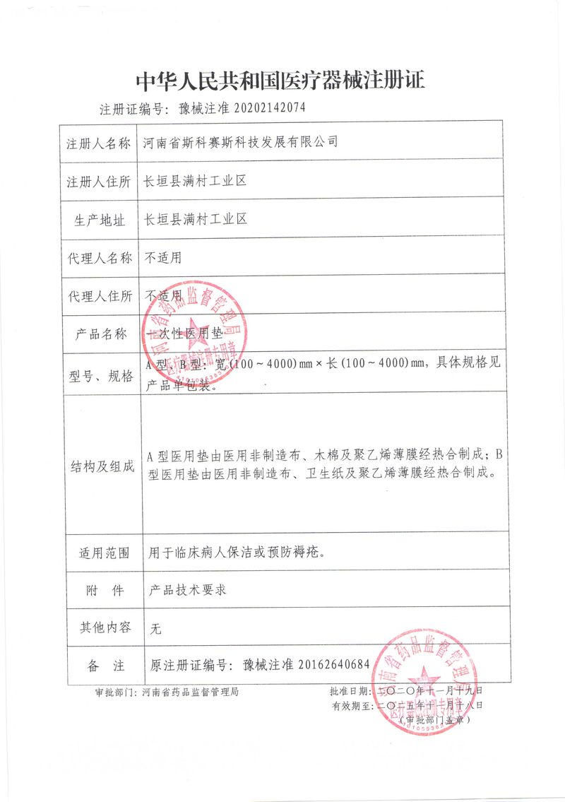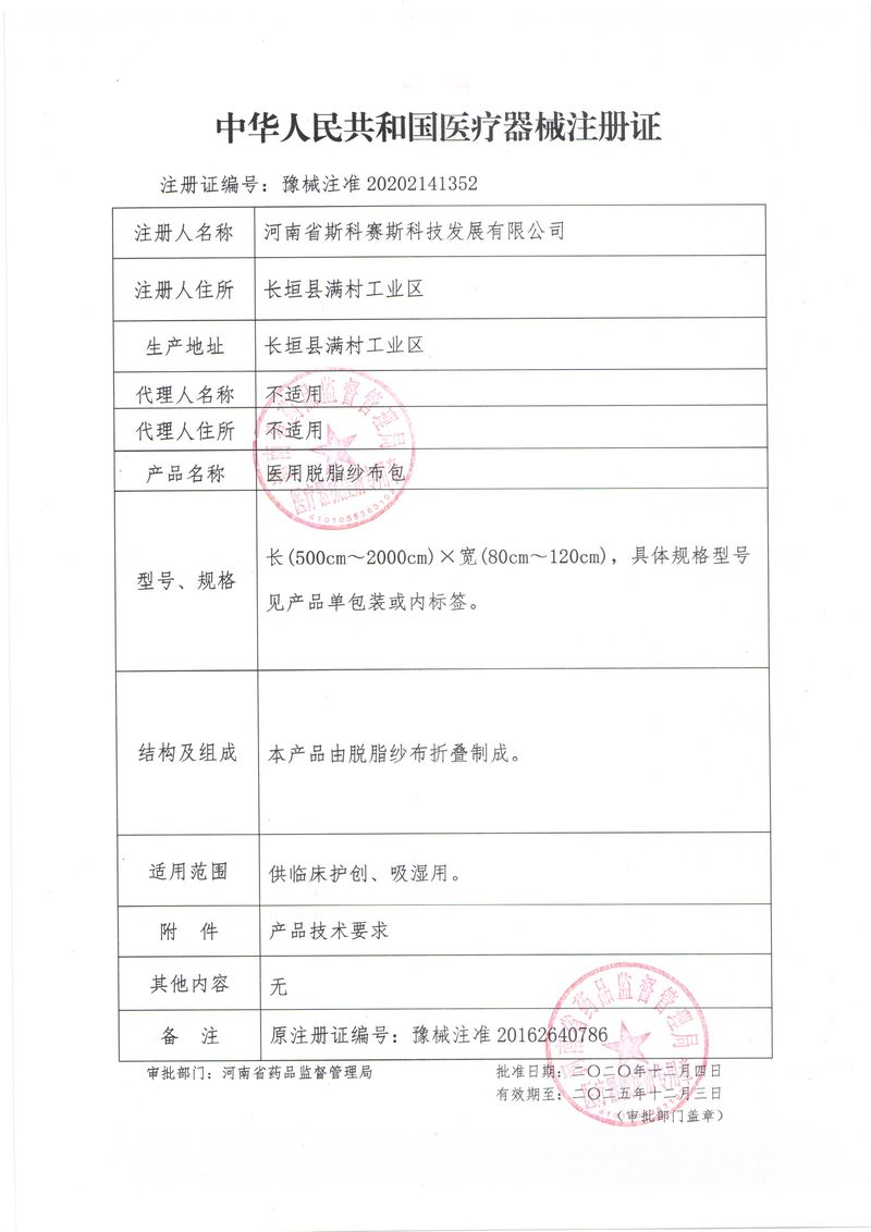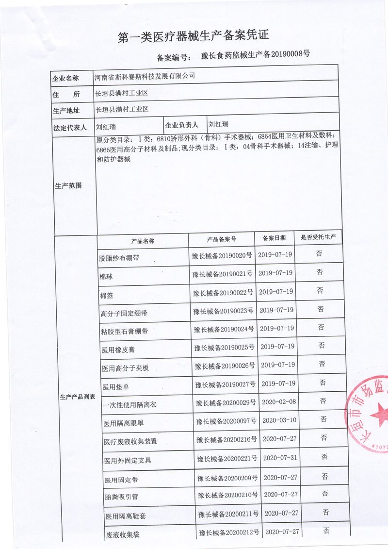 河南省斯科賽斯科技發(fā)展有限公司創(chuàng)建于 2011 年,位于“中國醫(yī)療耗材之都”- 河南省長垣縣,西臨 308 省道,南靠新菏鐵路,北依長濟高速,交通便捷,經(jīng)濟發(fā)達(dá),環(huán)境優(yōu)美。斯科賽斯積極進(jìn)入醫(yī)療健康和服務(wù)領(lǐng)域,秉承為用戶創(chuàng)造價值的理念,專注于醫(yī)用耗材解決方案的研發(fā)和運營,并為用戶提供完善的產(chǎn)品解決方案;  斯科賽斯主要生產(chǎn)醫(yī)用麻醉系列、醫(yī)用高分子系列、醫(yī)用敷料包系列、醫(yī)用無紡布系列、醫(yī)用防護(hù)系列、醫(yī)用脫脂棉系列、生物材料制品類等七大類、100 多個品種、400 多個規(guī)格的產(chǎn)品。公司占地面積約 30000 平方米,建筑面積20000 平方米,擁有 10 萬級的凈化車間總面積 10000 平方米。擁有國際先進(jìn)水平的生產(chǎn)設(shè)備和檢測儀器,技術(shù)裝備精良,檢測手段完善,為醫(yī)療行業(yè)的不斷發(fā)展進(jìn)步提供保障。公司順利通過 ISO9001、ISO13485 質(zhì)量管理體系認(rèn)證。  斯科賽斯堅持研發(fā)高科技新產(chǎn)品,力爭在醫(yī)療器械關(guān)鍵領(lǐng)域取得技術(shù)和研發(fā)的重大突破;立足國內(nèi)和國際兩個市場,逐步實現(xiàn)管理理念、經(jīng)營機制、人力資源、技術(shù)、產(chǎn)品、市場等全方位對接,提高企業(yè)的核心競爭力;過去的歲月里,斯科賽斯砥礪前行,誠信務(wù)實,銳意進(jìn)取,不斷創(chuàng)新,用自己的睿智和辛勞,以富有責(zé)任感的使命,在探索中追求,在追求中超越,致力于成為值得信賴的醫(yī)療用品生產(chǎn)企業(yè)!在未來的日子里,斯科賽斯將一如既往豪情滿懷,信心百倍,攜手并肩,執(zhí)著追求,向更高的的目標(biāo)前進(jìn),鑄造新的輝煌!